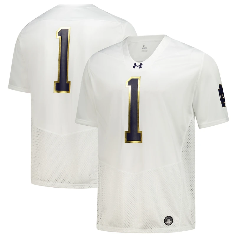 Maillot de football réplique Under Armour blanc Notre Dame Fighting Irish n°1 pour homme