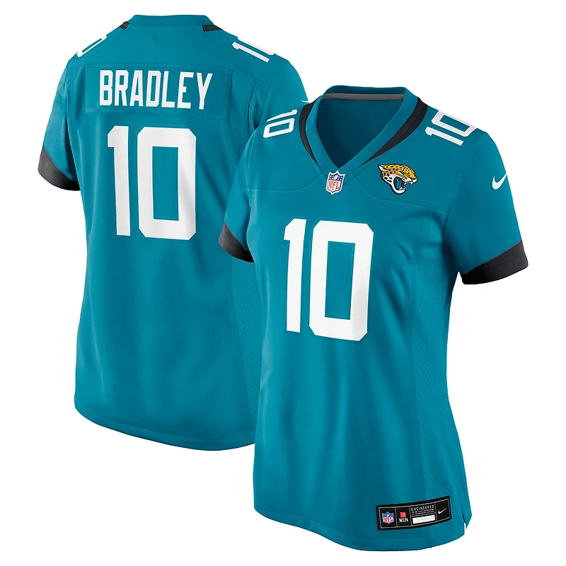 Maillot de match Nike Carter Bradley bleu sarcelle des Jaguars Jacksonville pour femmes