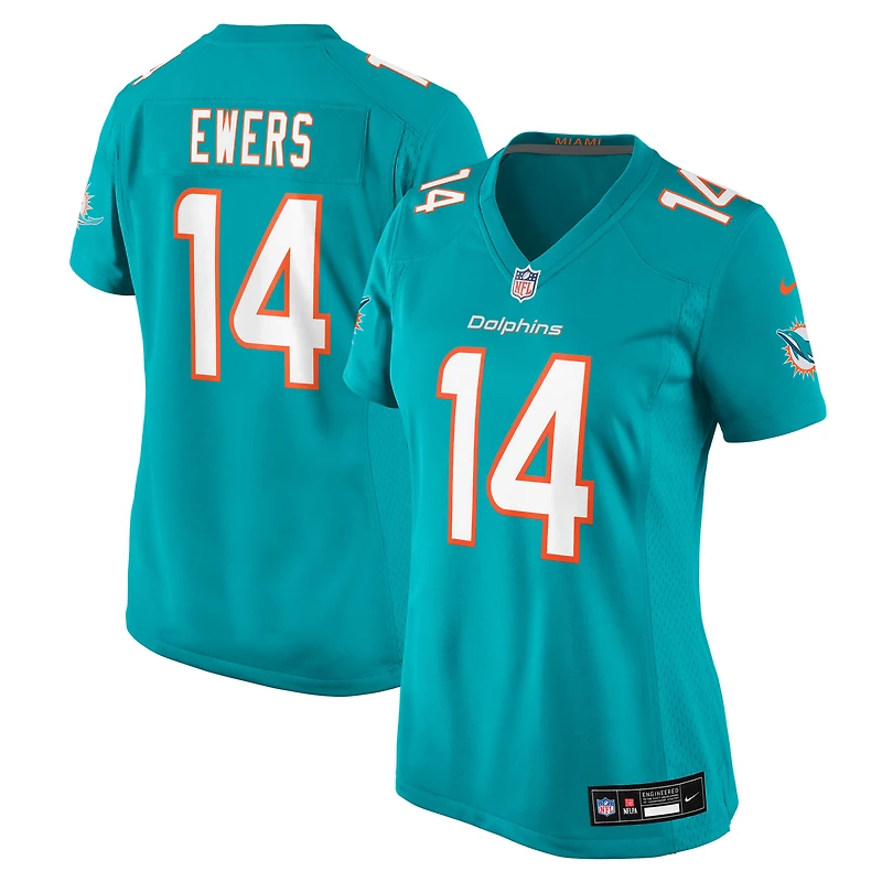 Maillot de match Nike Quinn Ewers Aqua pour femme des Miami Dolphins