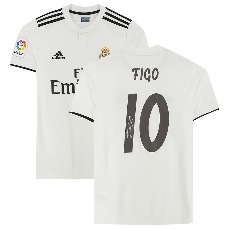 Maillot domicile 2018-19 autographié par Luis Figo du Real Madrid avec numéros de style fan