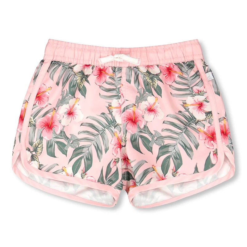 Le short de bain rose à imprimé hibiscus apporte une touche audacieuse et ludique aux journées à la plage. Conçu avec un motif hibiscus tropical sur fond rose, ce bas est doté d’une taille élastique avec cordon ajustable pour un maintien parfait. Son ourlet arrondi ajoute confort et style, tandis que sa confection en polyester recyclé avec doublure douce complète la collection "Comme un poisson dans l’eau" avec énergie et élégance.Caractéristiques: