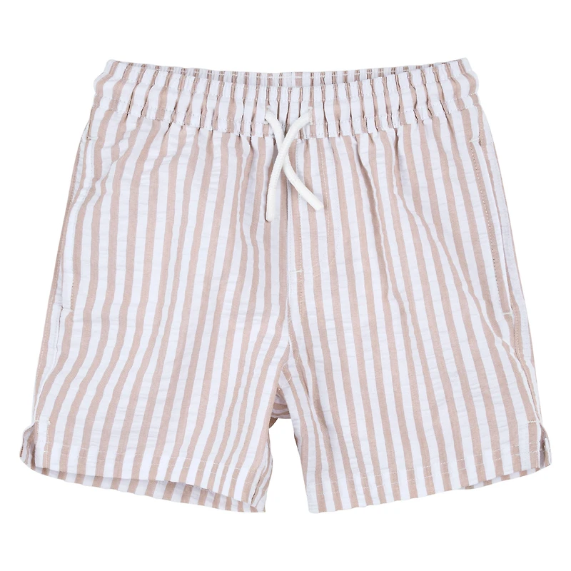 Avec une allure intemporelle inspirée des plages de sable, ce maillot de bain en seersucker taupe est naturellement stylé et s'agence avec les maillots de bain disponibles pour toute la famille. L'élastique à la taille permet de le remonter et de le baisser facilement pour s'habiller et se sécher, tandis que le cordon de serrage assure une bonne tenue pour jouer toute la journée. Associez-le à l'un de nos maillots dermoprotecteurs texturés pour plus de chaleur et de protection contre le soleil ou les eaux froides.
