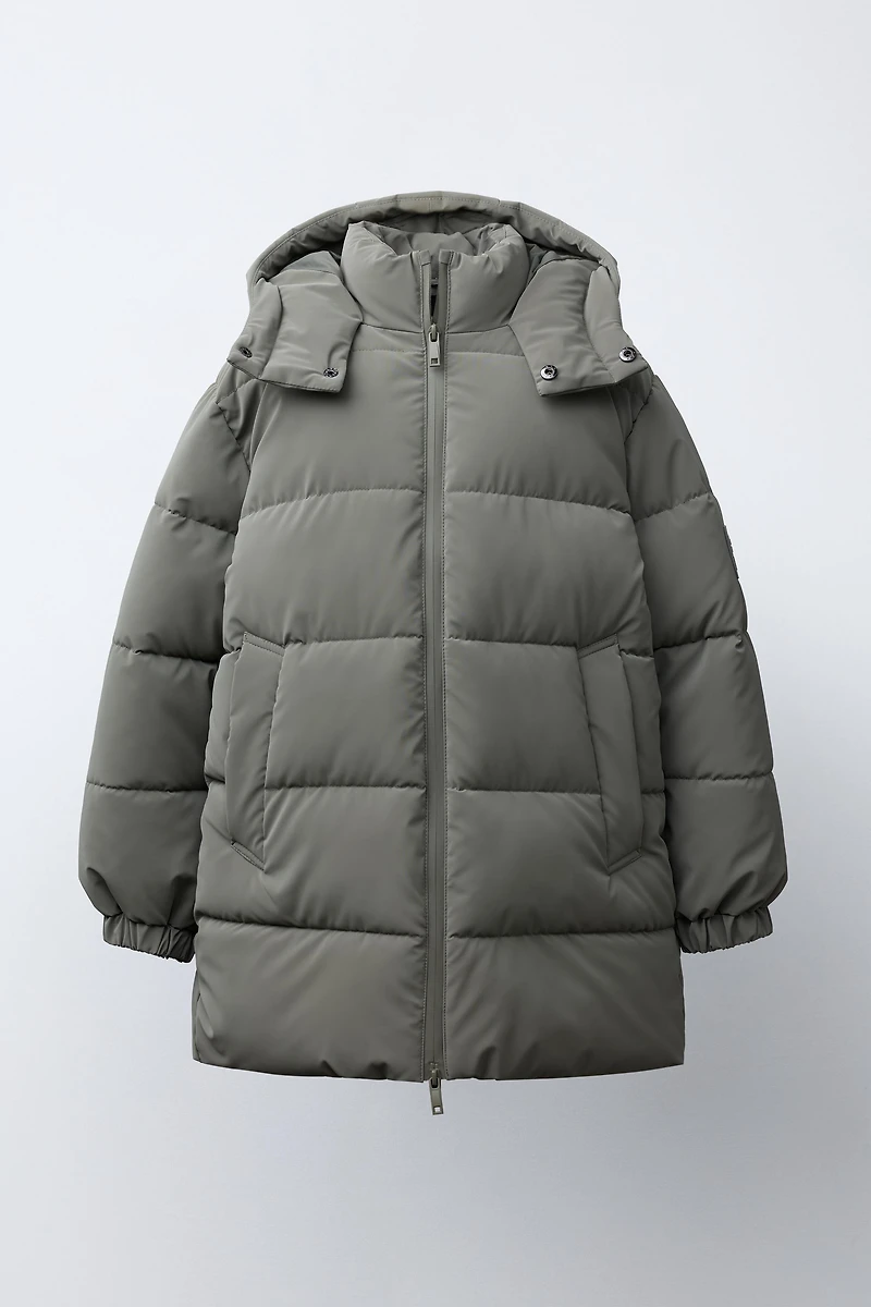 Manteau long avec capuche, col montant avec fermeture par boutons-pression et manches longues avec poignets élastiques. Fermeture avec zip thermosoudé avec double ouverture frontale. Poches avec détail passepoilé, fermeture avec boutons-pression et doublure intérieure en tissu polaire. Étiquette gommée appliquée sur la manche.