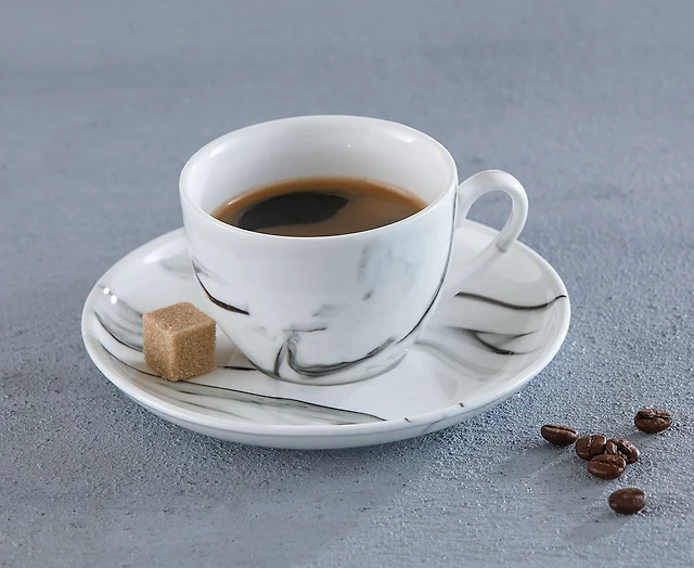 Marble Cup with Saucer, White & Grey, 120 ml