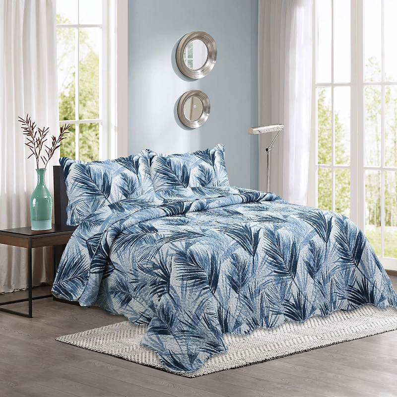 Marina Decoration Couvre-lit Pinsonic imprimé en relief, ensemble de couette d'été ultra doux avec taies d'oreiller, motif de feuilles bleues modernes
