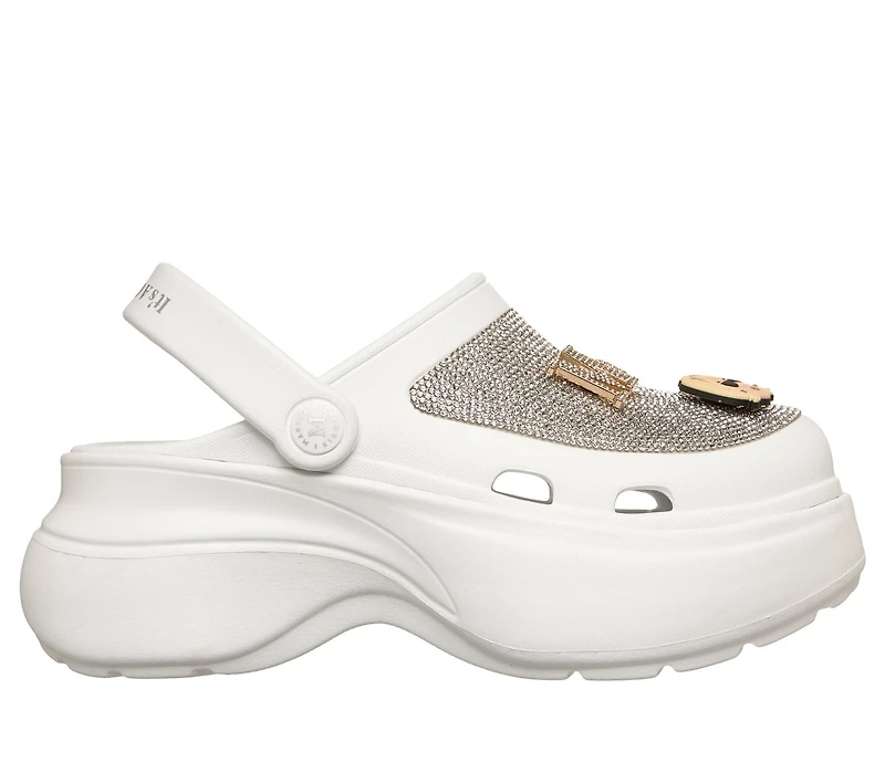 Celebrated lifestyle expert, Martha Stewart, delivers her one-of-a-kind touch to Skechers in this spirited collaboration. Make a statement with a fashion-forward look in Skechers Foamies® x Martha Stewart: Foamies Tai - Starstruck. This sculpted fashion clog features a rhinestone-embellished Foamies® EVA upper with Martha Stewart-themed charms, a convertible back heel strap, a cushioned footbed, and a chunky midsole.