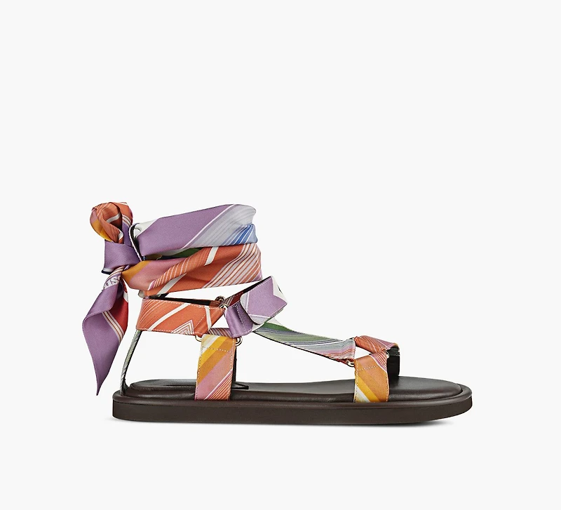 Les sandales Maud de Missoni traduisent l’esthétique expressive de la marque à travers une silhouette plate élégante, pensée pour l’été. Doté d’un design à multiples brides et de liens à nouer autour de la cheville, ce modèle offre un maintien fluide et raffiné. Sa semelle basse et coussinée assure un confort agréable, idéale pour les journées en ville, les vacances et les moments décontractés.