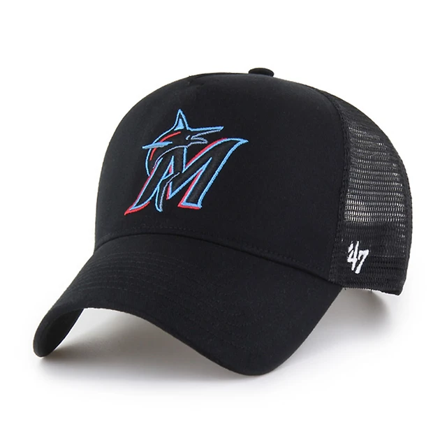Men's '47 Black Miami Marlins Ballpark Offside Adjustable Trucker Hat