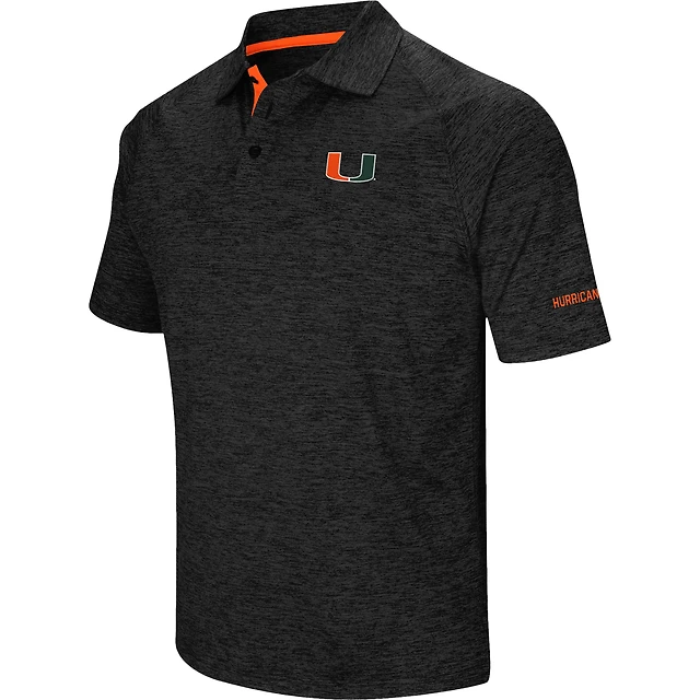 Men's Colosseum Black Miami Hurricanes Down Swing Polo