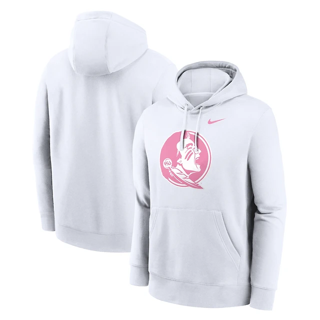 Men's Nike White Florida State Seminoles Pink Logo Club Fleece Hoodie