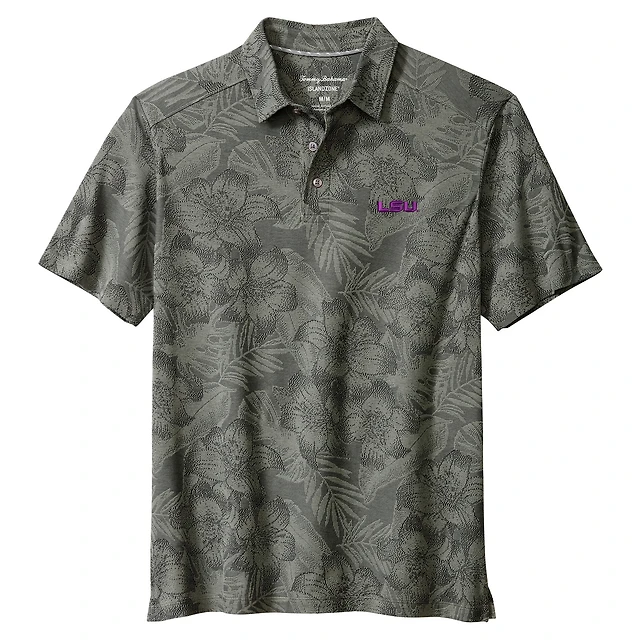 Men's Tommy Bahama Gray LSU Tigers Palm Fresco Hibiscus IslandZone® Polo