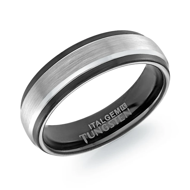 Jonc Pour Homme en Tungstène Brossé et Poli - 6mm | Doucet Latendresse