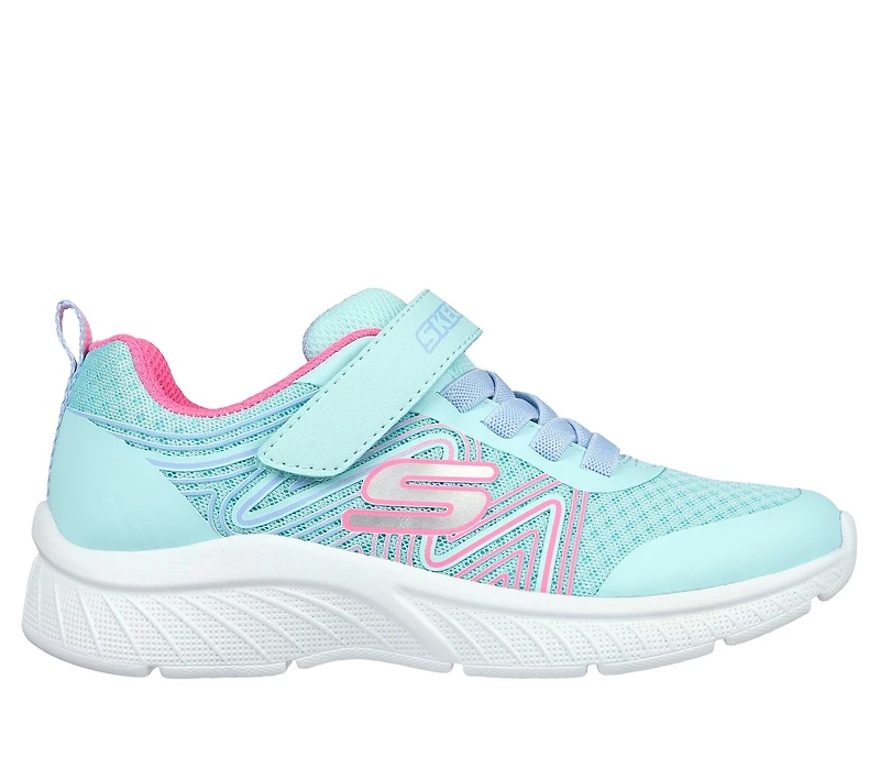 Le modèle Skechers Microspec Plus - Swirl Sweet allie un confort facile à porter à un style sportif. Cette conception légère comprend une empeigne en maille et en matériau synthétique, avec des lacets extensibles et une sangle de cambrure.