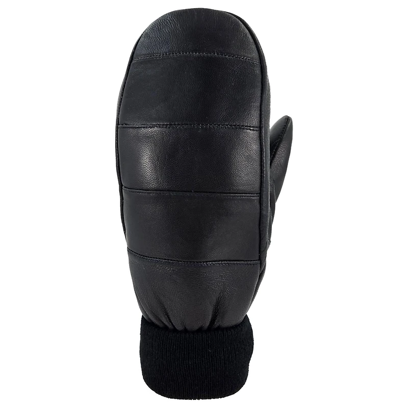 Mitaine de cuir avec poignet de tricot et surpiqûres au dos