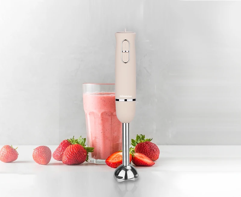 Mélangeur à main polyvalent de 300W avec 12 vitesses et pied en acier inoxydable détachable. Idéal pour soupes, smoothies et sauces.