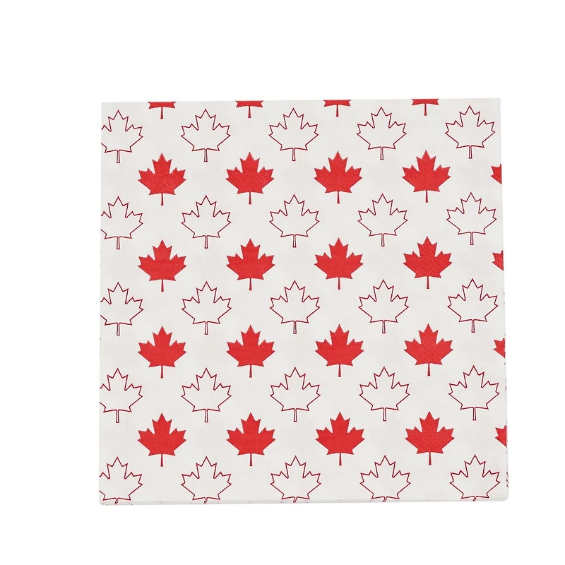 Mode de célébration! Serviette de déjeuner en papier érable rouge et blanc, 6,5 pouces, 18 carats