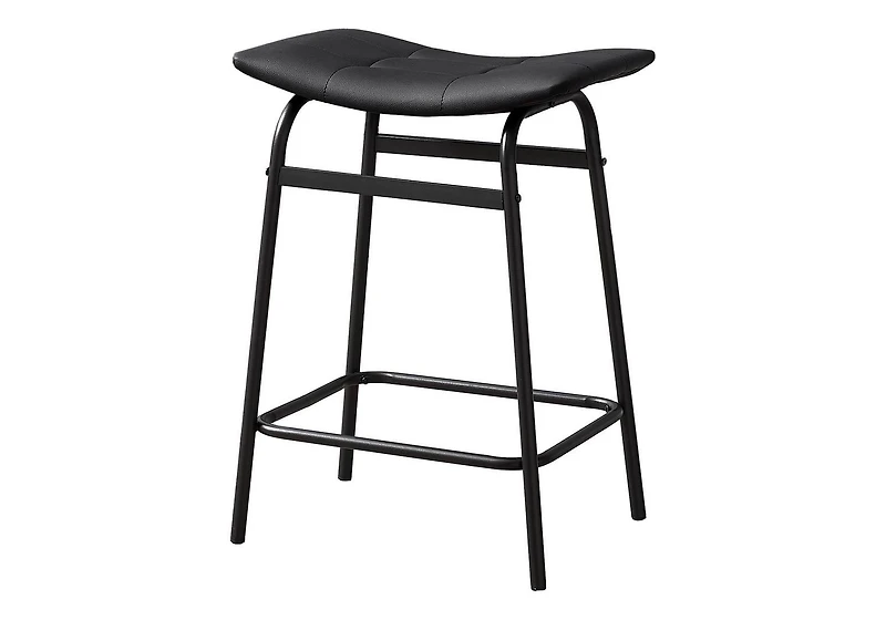 Offrez à votre cuisine ou espace de divertissement un rafraîchissement avec cet ensemble de 2 tabourets de bar de hauteur comptoir, au style moderne et tendance. L'élégant revêtement aspect cuir noir, associé aux pieds en métal noir robuste, crée un look contemporain qui ne manquera pas d'impressionner. Le design sans dossier et les sièges en selle rembourrés assurent un confort optimal pour vous détendre. Ces tabourets sont faciles à assembler grâce aux instructions illustrées incluses et sont couverts par une garantie limitée de 2 ans pour une tranquillité d'esprit. Avec un repose-pieds pratique et une construction solide, ces tabourets de bar de hauteur comptoir sont l'ajout parfait à tout espace chic. Associez-les à une table de hauteur comptoir (vendue séparément) et rénovez votre décoration avec ces tabourets confortables et au style tendance !