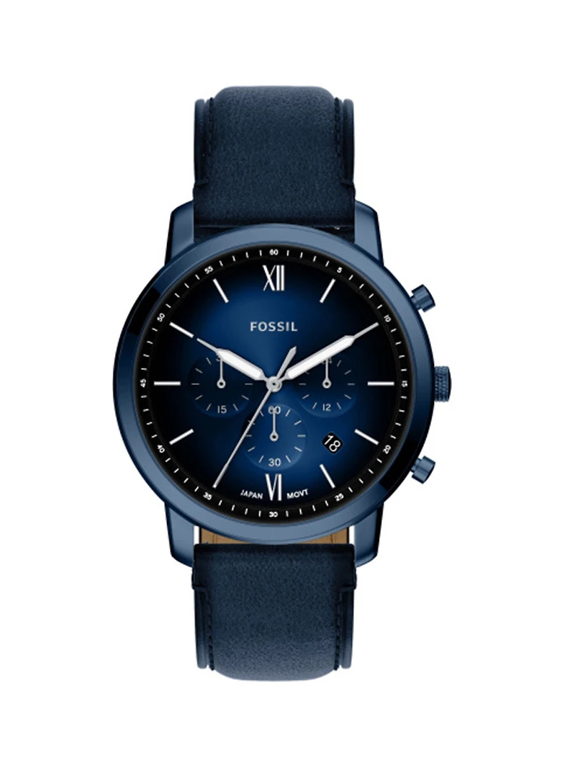 DESCRIPTION - Mouvement : Chronographe à quartz - Taille du boîtier: 44 mm - Largeur du bracelet : 22 mm - Résistance à l'eau : 5 ATM - Couleur du boîtier : Marine - Couleur du cadran : Marine - Couleur du bracelet : Marine MATÉRIEL Acier inoxydable et Cuir