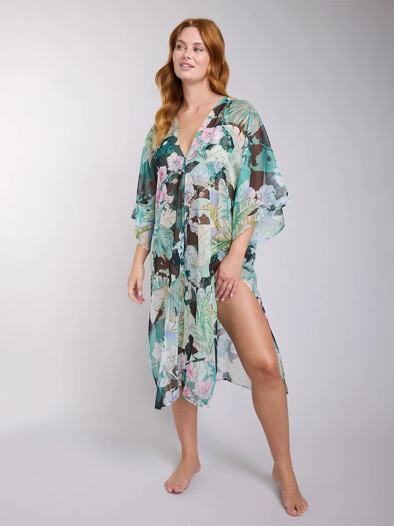 Le Naomi Short Caftan est une couche légère idéale pour les journées à la plage, avec ses larges manches style kimono et sa coupe fluide. Porté par-dessus un bikini ou avec des sandales pour un verre au coucher du soleil, il insuffle une énergie audacieuse et insouciante à tout look estival.