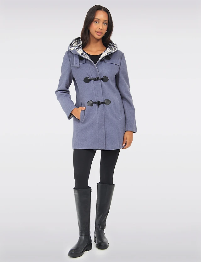 Noelle Wool Blend Quilt & Plaid Lined Hooded Toggle Closure Duffle Coat by Saki