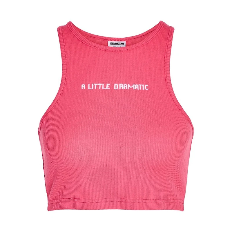 Un tank top cropped en maille côtelée qui fait une déclaration audacieuse. Arborant un message sérigraphié au centre de la poitrine, cette pièce épurée offre une coupe ajustée et moderne parfaite pour affirmer votre style.