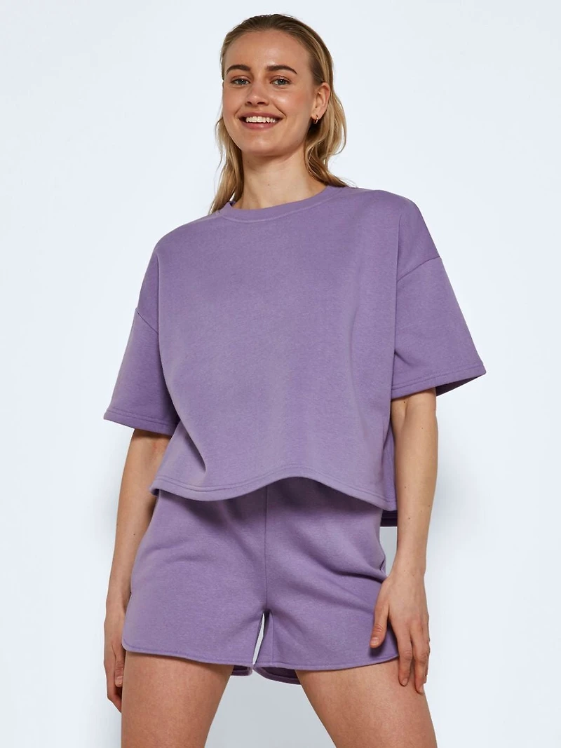 Un t-shirt sweat oversize qui respire le confort urbain. Coupe ample et relaxée avec des manches courtes généreuses, confectionné dans un coton doux et texturé. Parfait pour les looks streetwear minimalistes qui demandent peu mais offrent beaucoup.