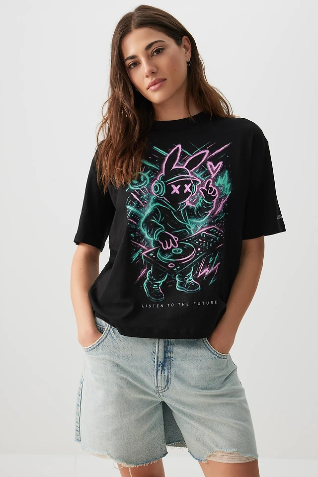NXNE x Ardene Oversized Graphic T-Shirt in Black | Size | 100% Cotton