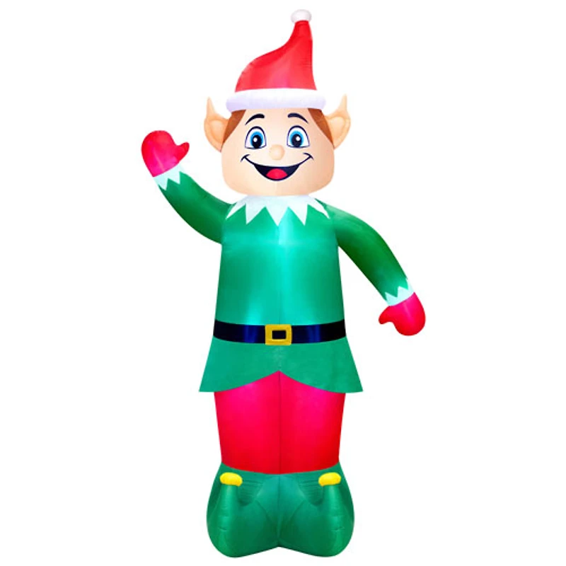 Elfe gonflable facile à installer avec un gonflage automatique rapide à l'aide du souffleur inclus Éclairage éblouissant créant une lueur festive pour rehausser votre décor des Fêtes Résistance aux intempéries pour une utilisation à l'intérieur et à l'extérieur Se dégonfle facilement à la fin de la saison pour un rangement pratique jusqu'à l'année prochaine