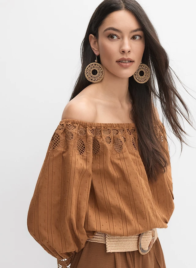 AERO Fold-Over Off-Shoulder Long Sleeve Top