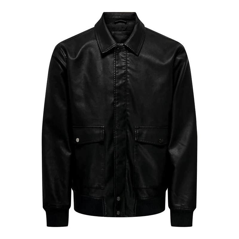Only & Sons : Collar Faux Leather Jacket