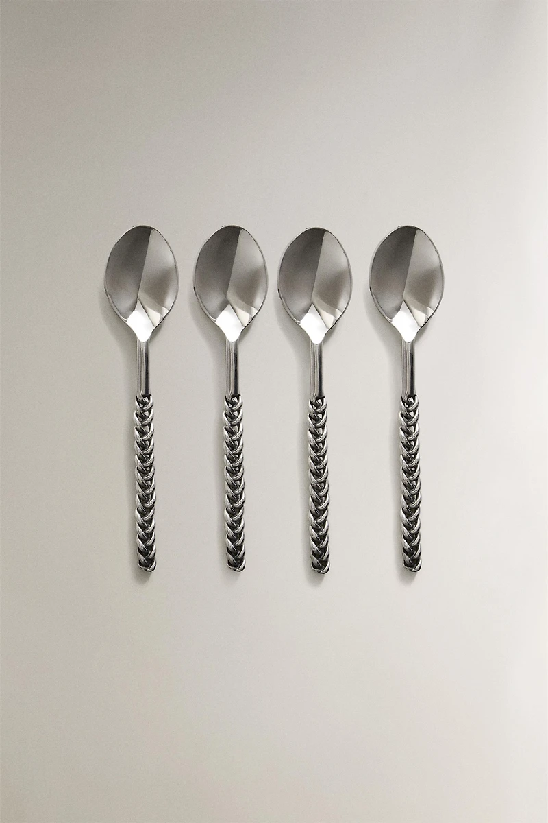 PACK PETITES CUILLÈRES À DESSERT MANCHE TRESSÉ MÉTAL (PACK DE 4)
