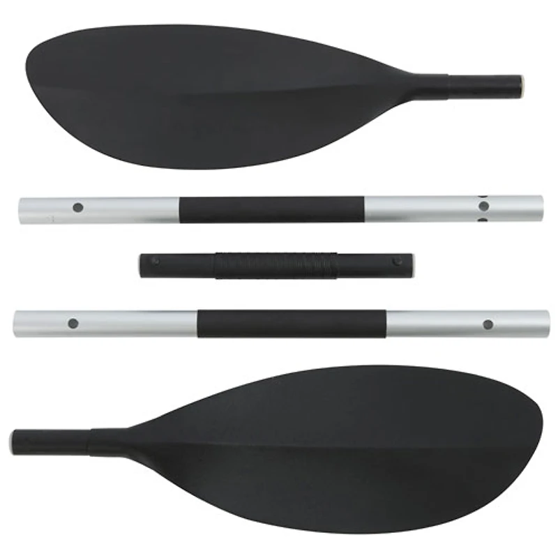 Pagaie de kayak de 86 po (longueur assemblée) idéale pour toutes vos aventures en kayak Les pales nervurées en forme de cuillère améliorent l'efficacité pour des coups puissants Le manche en aluminium robuste et léger offre une durabilité accrue sans ajouter de poids supplémentaire pour pagayer sans effort Trois positions de réglage permettant de personnaliser l'angle de la pale pour un confort accru et une meilleure efficacité de coups Approuvé TUV RL pour assurer la fiabilité et la sécurité Poids : 1 040g