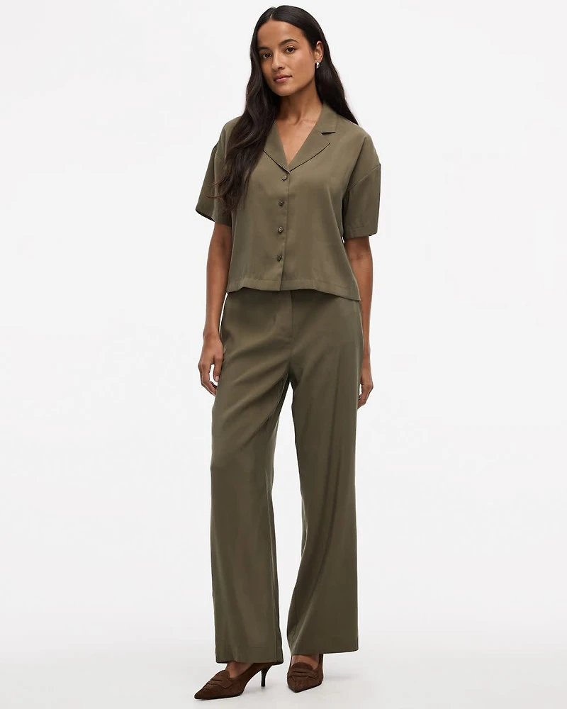 Optez pour un style qui se démarque avec ce pantalon à jambe large super tendance. Portez-le avec une camisole ou un simple t-shirt, une blouse féminine ou un pull douillet selon votre humeur et la météo! - Maille tissée non extensible - Taille haute - Jambe large - Braguette à glissière avec agrafe - Poches latérales fonctionnelles à l'avant  - Poches appliquées fonctionnelles au dos - Entrejambe : 30,5 po * L'entrejambe Petite est 2 po plus court. L'entrejambe Long est 2 po plus long. * Exclusivité Web : Petite et Long.