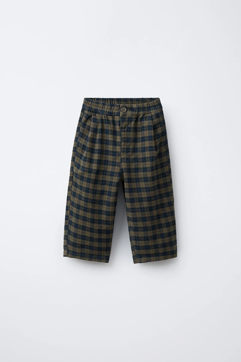 Pantalon de type ballon soft touch avec taille élastique et fermeture boutonnée sur le devant. Poches avant et poches plaquées à l'arrière. Imprimé à carreaux.