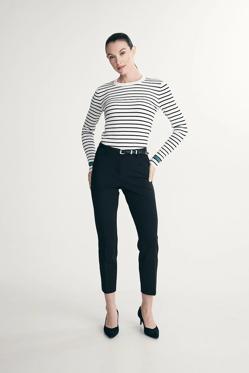 Alliant fonctionnalité et élégance discrète, ce pantalon droit écourté se distingue par la qualité de son tissu et son confort moderne. Conçu pour s'adapter facilement à diverses tenues du quotidien, il offre une polyvalence dans les environnements professionnels et décontractés.