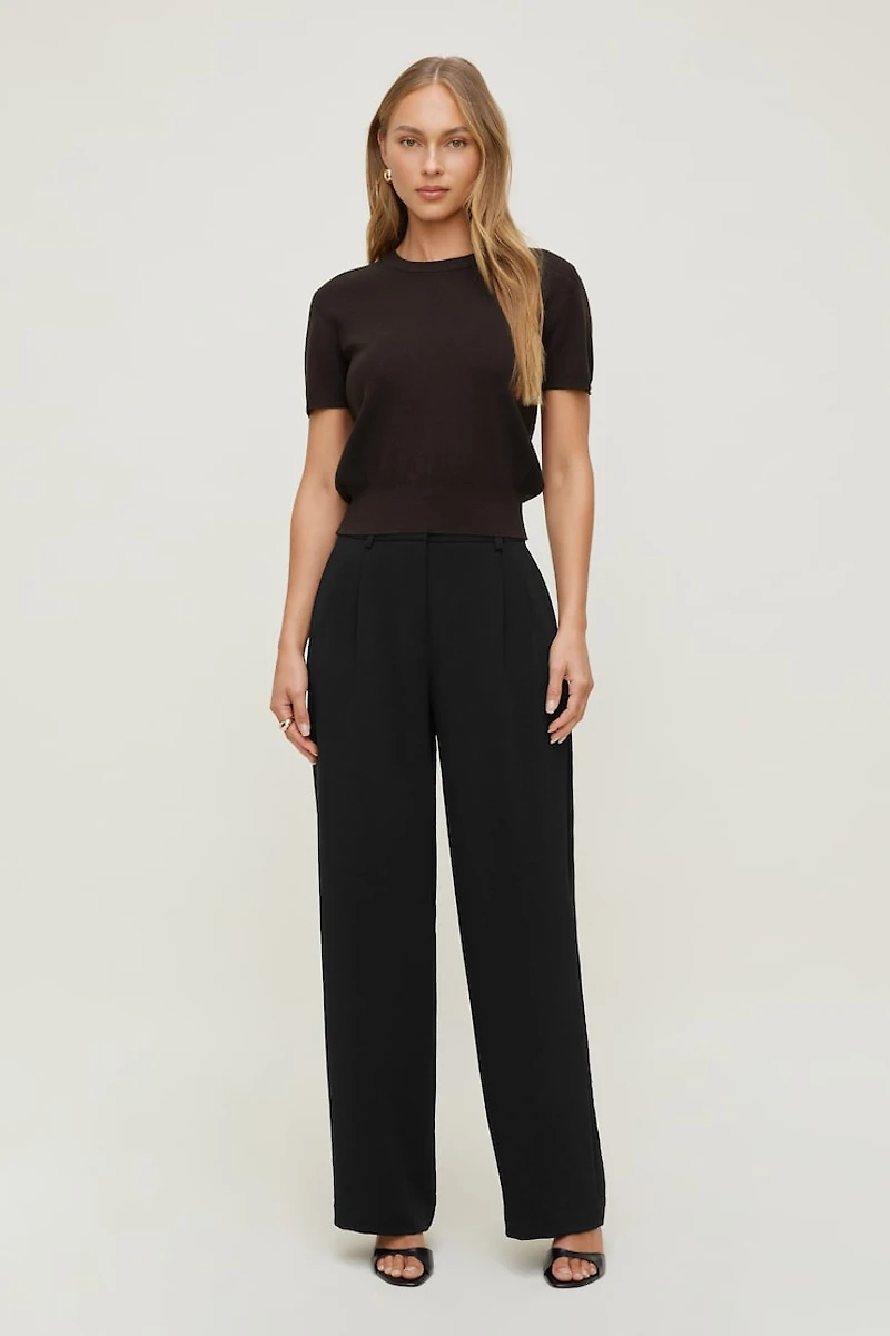 Ce pantalon est confectionné dans notre crêpe à la fois léger et fluide avec de subtiles froissures qui lui confèrent un aspect raffiné et une agréable sensation de fraîcheur. Il est conçu pour reposer haut sur la taille avec une assise décontractée qui se prolonge en une jambe large drapée. Avec ses détails plissés, ce