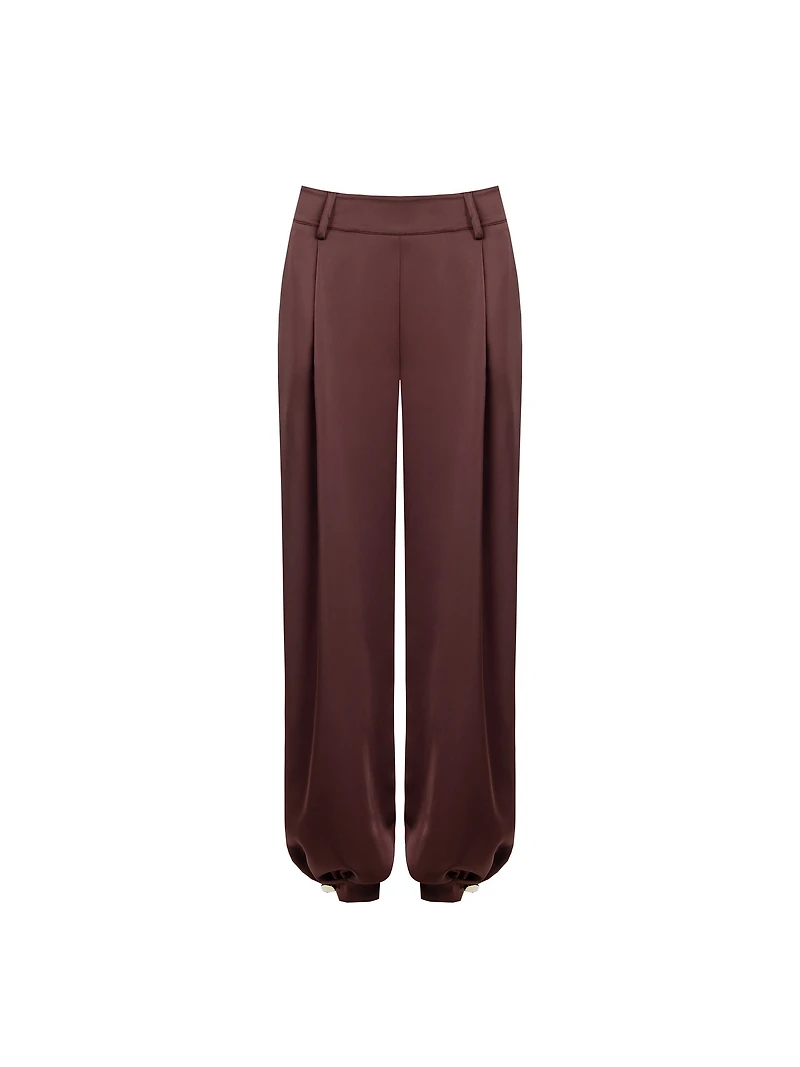 Conçu pour une élégance sans effort, ce pantalon fuselé fluide présente une taille mi-haute à haute qui crée une silhouette flatteuse et épurée. Le tissu doux et lisse tombe magnifiquement avec un léger froncé à la cheville pour une finition raffinée. Une ceinture épurée avec des passants offre des options de style polyvalentes. La riche teinte cacao apporte chaleur et sophistication à toute garde-robe. Composition : 100 % polyester Fabriqué en Italie.