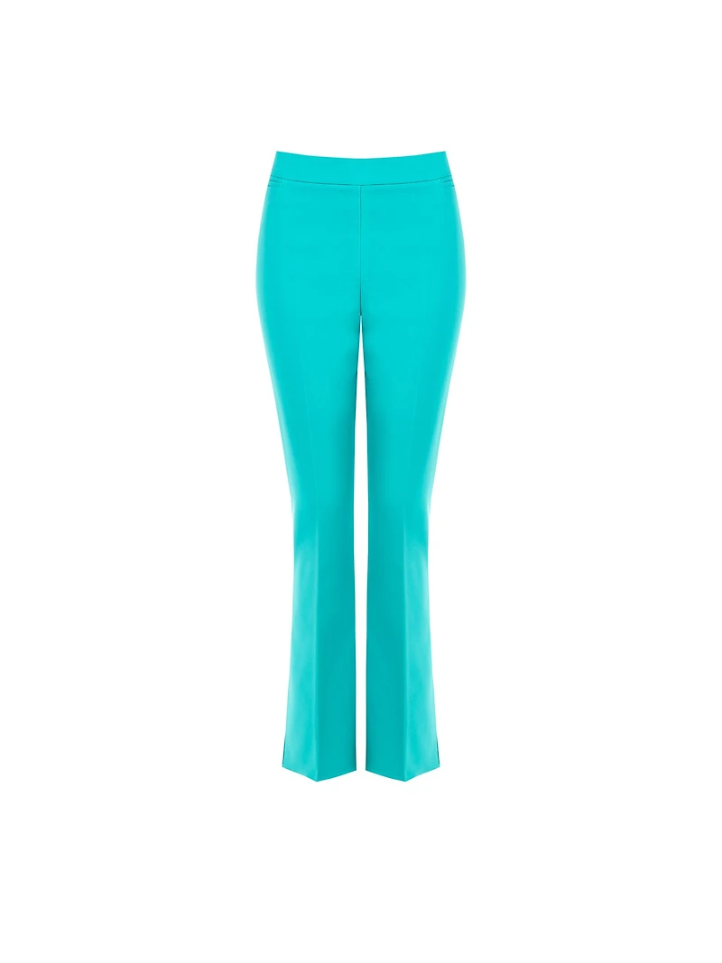 Pantalon ajusté et élégant à taille haute, sans couture. Il présente des plis nervures centraux qui allongent la silhouette, associés à une coupe ajustée qui s'évase progressivement pour un léger effet bootcut à l'ourlet. Le tissu en crêpe extensible structuré assure une tenue impeccable tout en offrant un confort optimal tout au long de la journée.