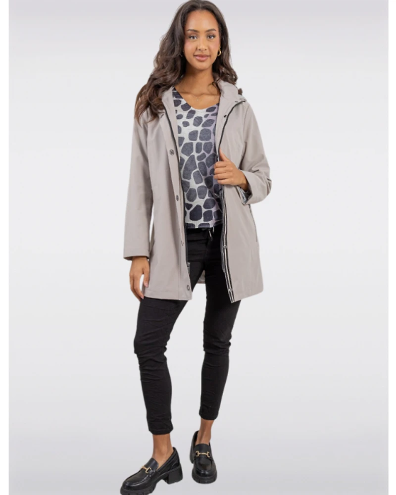 - Capuche amovible à glissière facile avec un cordon élastique ajustable