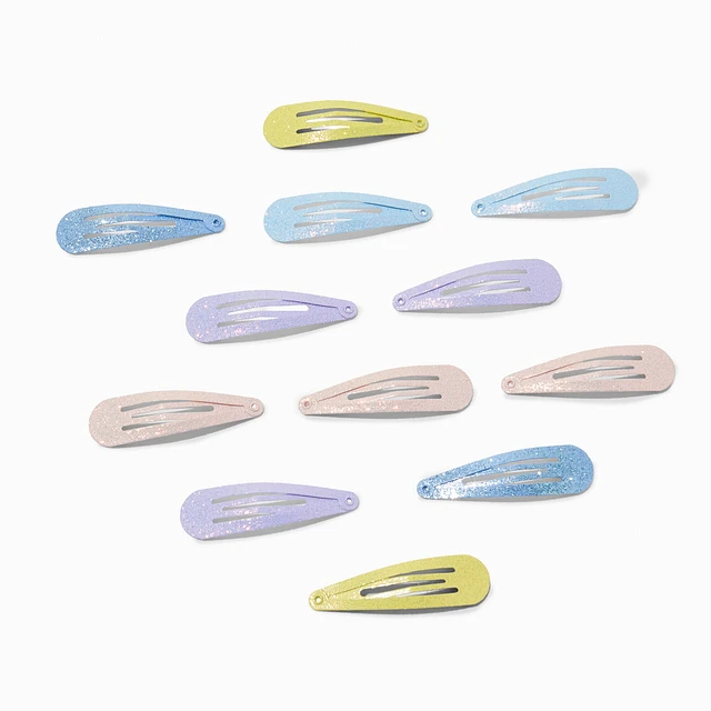 Pastel Glitter Snap Hair Clips - 12 Pack