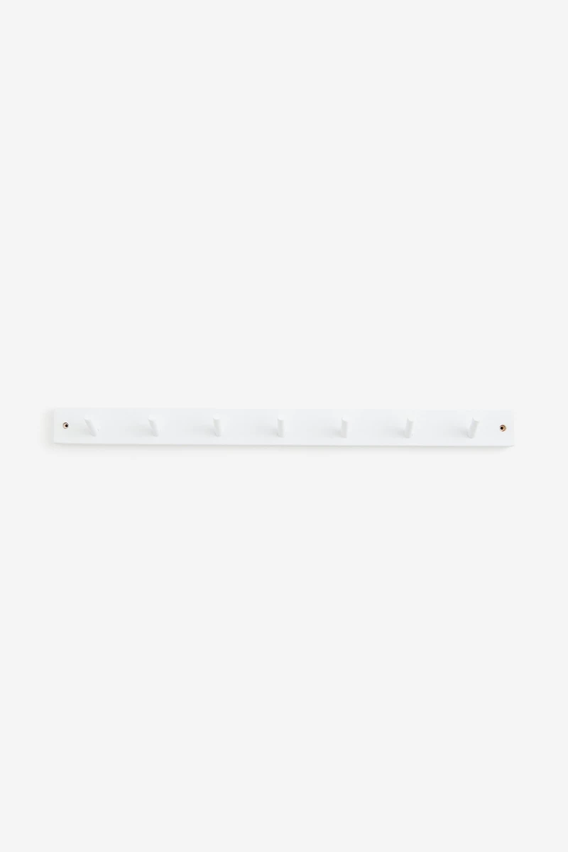 Patère en bois avec sept crochets. Modèle avec deux trous de suspension. Vis non incluses. Dimensions 4,5 x 5 x 61,5 cm.