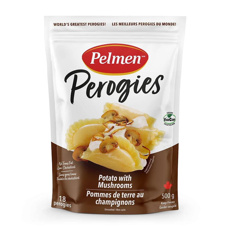 Authentiquement européens, exquisément préparés avec des ingrédients frais, ils sont faciles et rapides à préparer. Pommes de terre onctueuses et champignons savoureux en perogies, la marque Pelmen, 500g sachet. Libérez le chef qui est en vous avec nos savoureux perogies — le choix parfait pour des repas rapides et délicieux. Découvrez d’innombrables possibilités : faites-les bouillir ou dorer à la poêle, accompagnez-les de vos condiments préférés, servez-les en accompagnement ou faites-en la vedette de votre table. Savourez la qualité maison d’un produit haut de gamme, alliée au goût et au raffinement d’une expérience gastronomique. Un dumpling, grand favori canadien, inspiré des recettes du Vieux Continent.