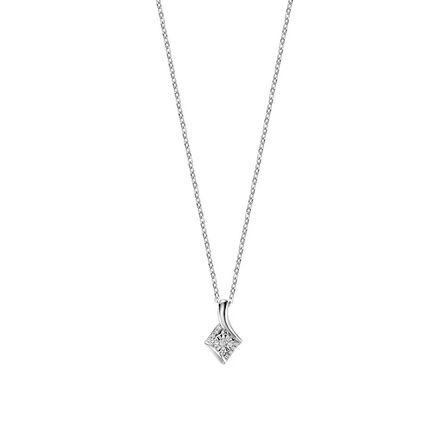 Necklace 16'' with heart-shaped pendant with 0.10 diamond points in 10K white Gold. Color: jaune | Doucet Latendresse