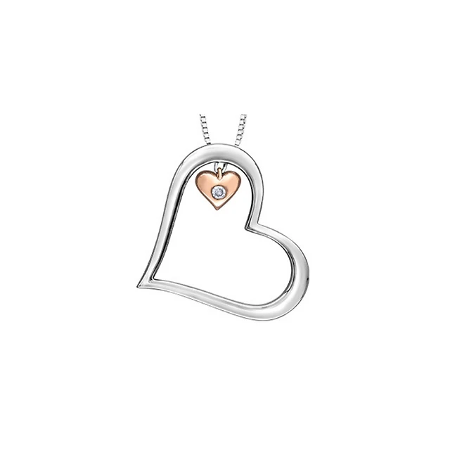 Necklace 16'' with heart-shaped pendant with 0.10 diamond points in 10K white Gold. Color: jaune | Doucet Latendresse