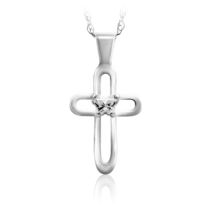 Pendentif croix BFLY pour enfants - Argent sterling & zircon cubique (mois d'avril). Color: argent | Doucet Latendresse