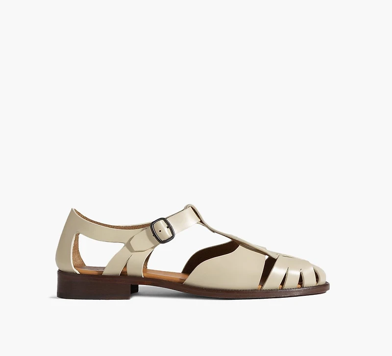 Inspirée des chaussures de travail méditerranéennes, la sandale Pesca de HEREU allie héritage et savoir‑faire raffiné. Confectionnée en cuir de veau espagnol lisse, cette silhouette à bout rond présente des découpes aérées, une assise plantaire en cuir rembourré et un profil bas pour un confort quotidien. Fabriquée à la main en Espagne, elle incarne une élégance artisanale intemporelle.