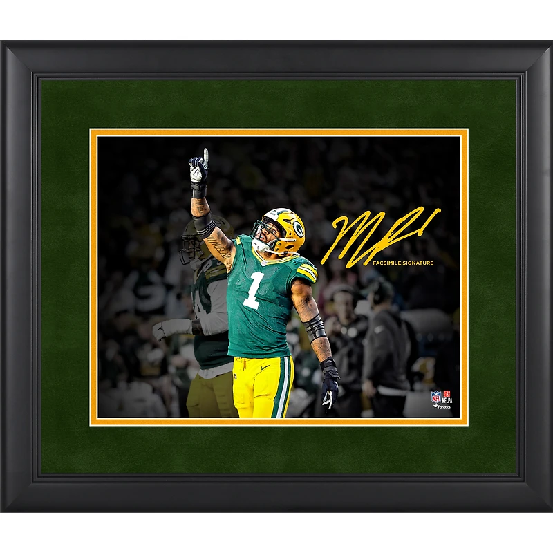 Enrichissez votre collection de souvenirs des Packers de Green Bay avec cette photo encadrée « Spotlight » de Micah Parsons, fac-similé de la signature (11 x 35 cm). Qu'elle soit exposée chez vous ou au bureau, cette photo prête à accrocher est idéale pour mettre en valeur votre passion pour les Packers de Green Bay et leur joueur vedette.