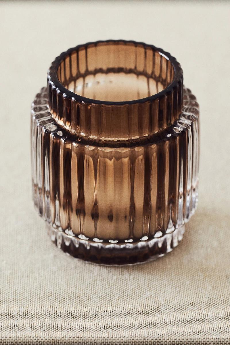 Photophore en verre cannelé. Diamètre 7 cm. Hauteur 8 cm.