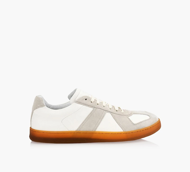 Des baskets à profil bas confectionnées avec une sensibilité rétro. Le modèle Pietro est bien plus qu’une simple chaussure décontractée avec ses panneaux à bandes, ses couleurs discrètes et ses lacets épais.