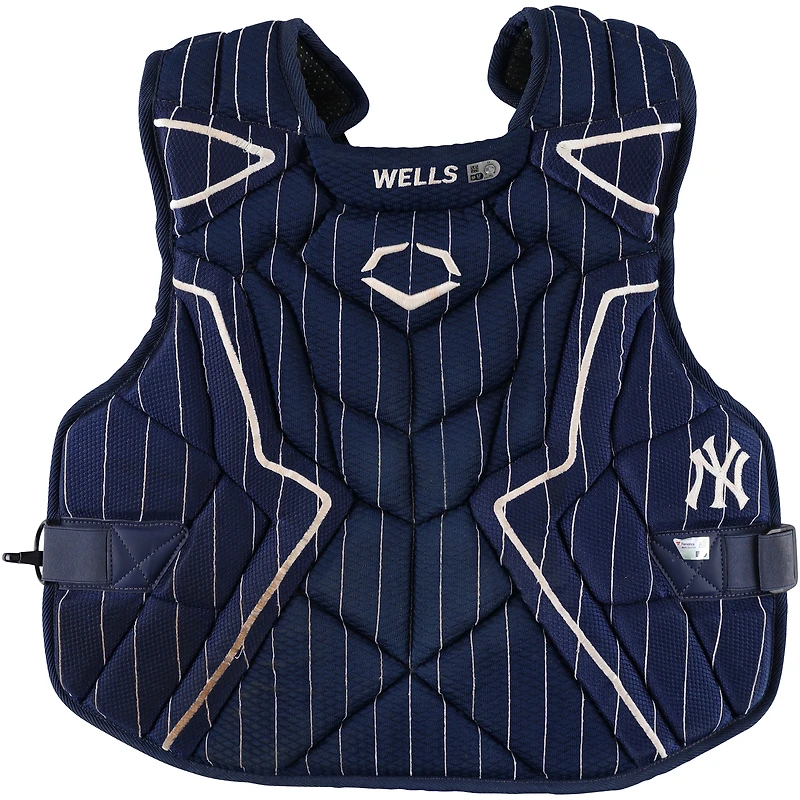 Plastron EvoShield bleu marine porté par Austin Wells lors du match des Yankees de New York contre les Brewers de Milwaukee, le 30 mars 2025.Plastron EvoShield bleu marine porté par Austin Wells lors du match des Yankees de New York contre les Brewers de Milwaukee, le 30 mars 2025.Plastron EvoShield bleu marine porté par Austin Wells lors du match des Yankees de New York contre les Brewers de Milwaukee, le 30 mars 2025.
